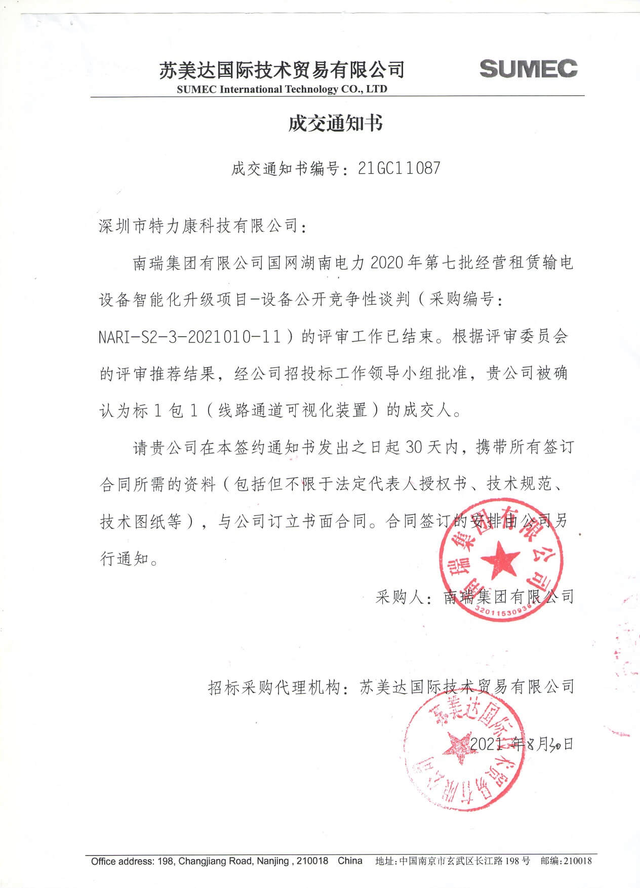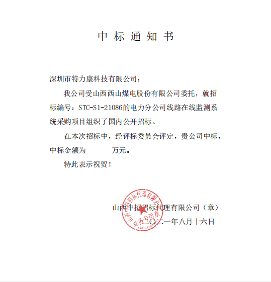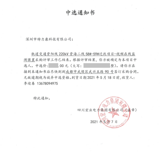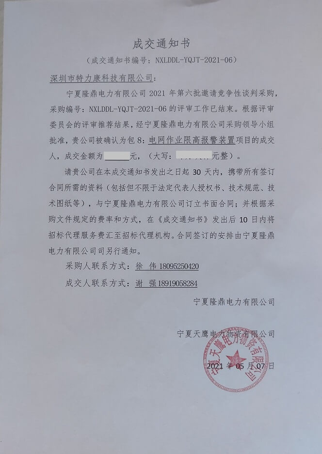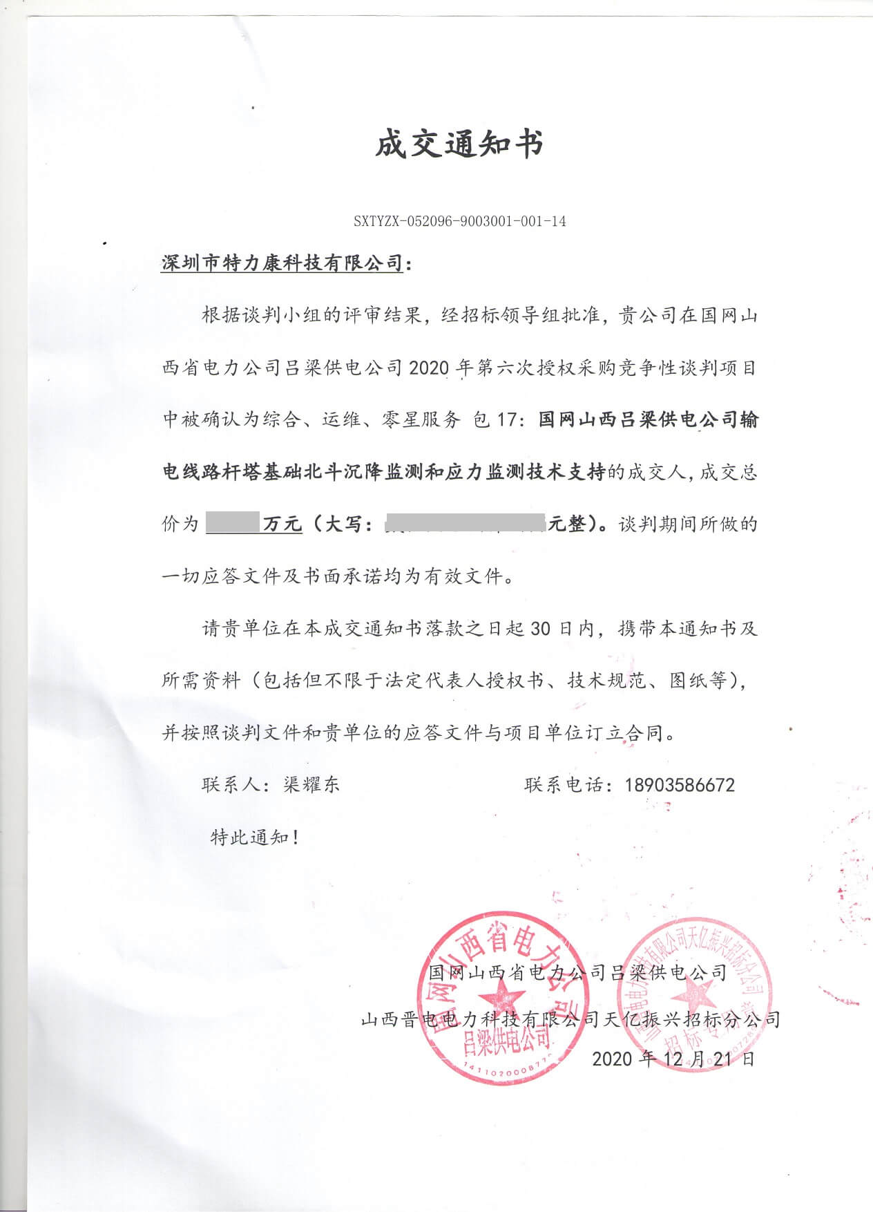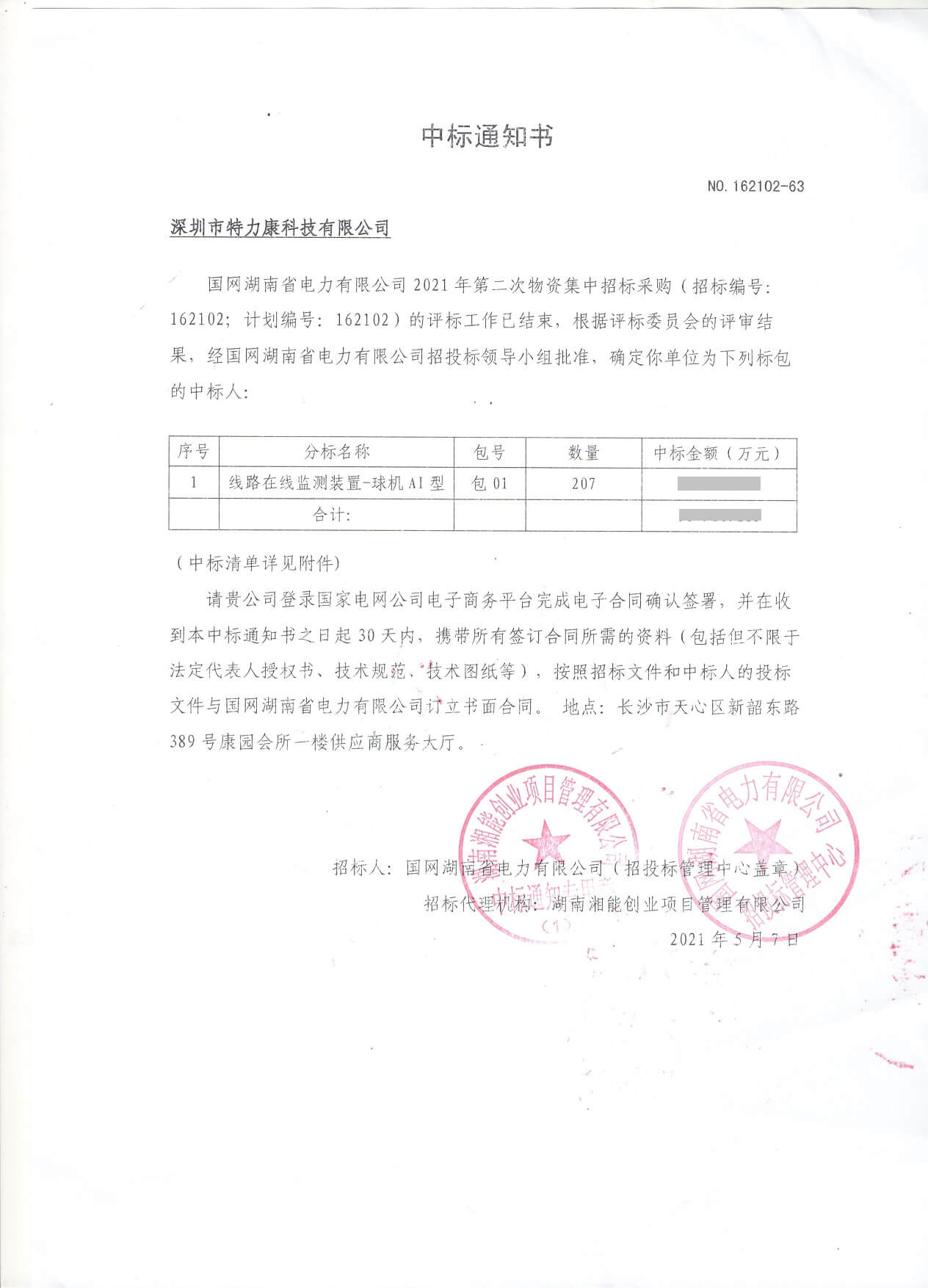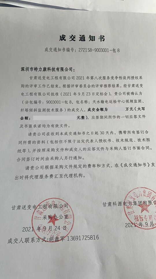 特力康中標國網黑龍江送變電工程公司的2024年度第18次物資類競爭性談判采購項目——慶陽驅鳥器物資框 特力康中標國網甘肅省電力公司省管產業單位2024年第五次物資競爭性談判授權采購項目 中標喜訊:深圳市特力康科技有限公司成功入圍許繼集團綜合能源公司輸電線路視頻在線監測裝置模塊集采項目 中標喜訊:特力康成功中標國網重慶市電力公司渝中一片區項目 特力康成功中標國網天津市電力公司2024年第二次?物?資招標項目 特力康中標國網安徽省電力有限公司蕪湖供電公司2024年3月非物質采購項目 破解巡檢難題:貴州電力用特力康 AI 微拍裝置,精準捕捉線路隱性隱患 精準捕捉 “微氣象”:浙江電力用特力康預警系統筑牢電網氣候防線 守護 “電力咽喉”:湖南電力投用百套特力康三跨 4G 監控球,筑牢安全防線 貴州電力裝特力康電網架空線路覆冰監測系統,精準防冰保電網過冬? 百套落地山西電網!特力康輕量化輸電架空線路監拍裝置,筑牢輸電安全網 破解采空區隱患:山西電力裝特力康通用型監測裝置,守鐵塔穩運行 寧夏配電線路安裝了我司防外破電子化智能警示牌