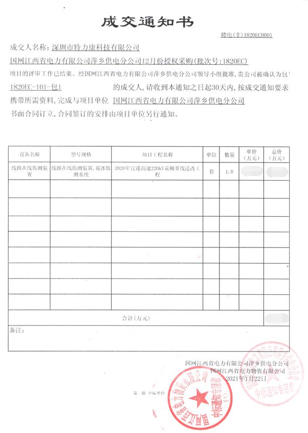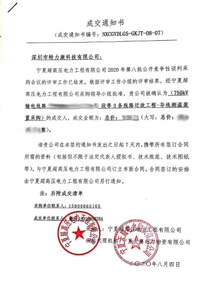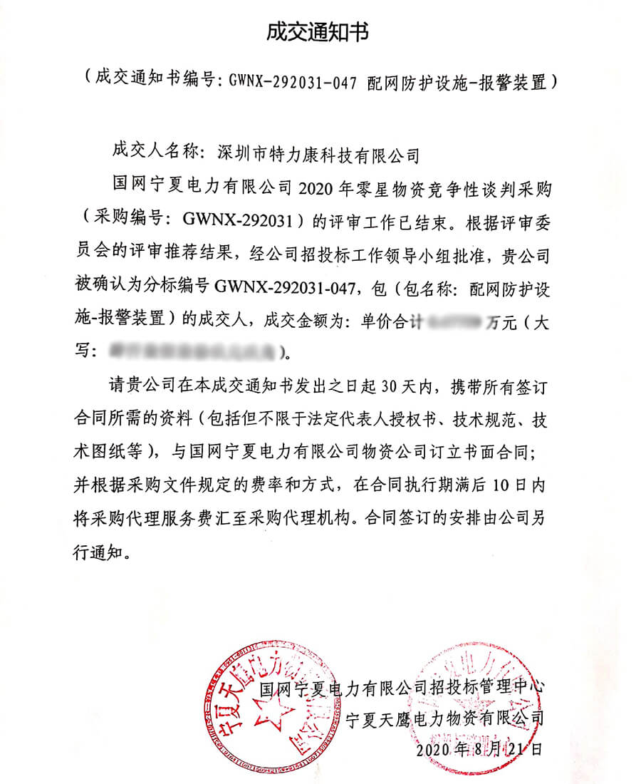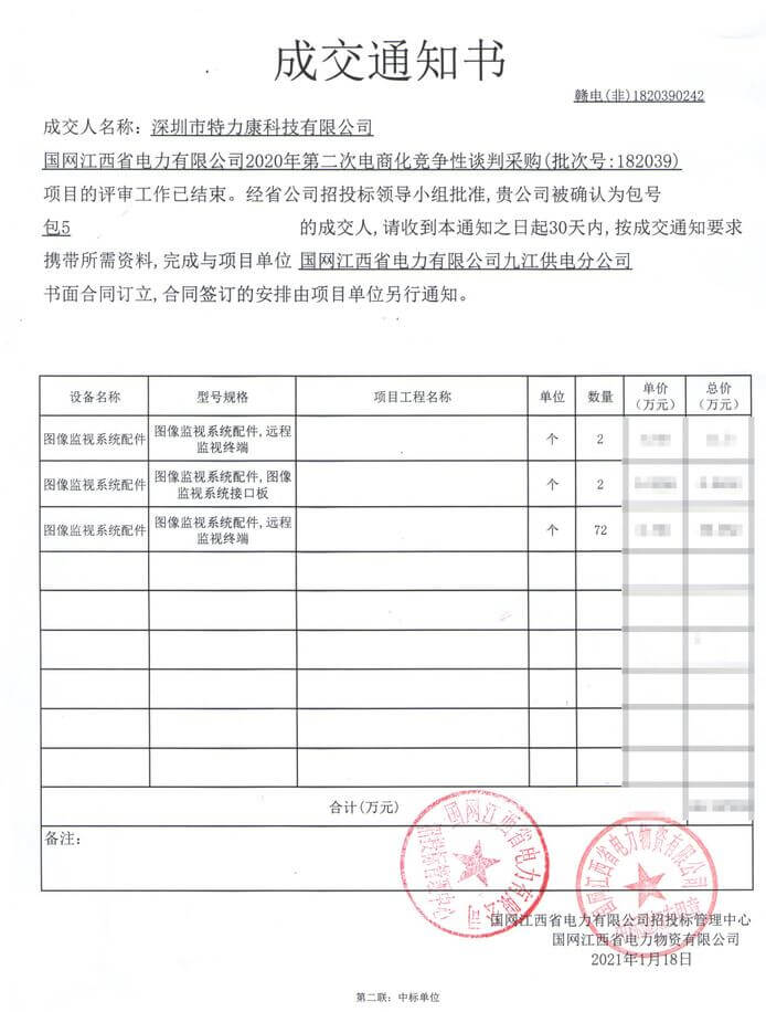 特力康中標國網黑龍江送變電工程公司的2024年度第18次物資類競爭性談判采購項目——慶陽驅鳥器物資框 特力康中標國網甘肅省電力公司省管產業單位2024年第五次物資競爭性談判授權采購項目 中標喜訊:深圳市特力康科技有限公司成功入圍許繼集團綜合能源公司輸電線路視頻在線監測裝置模塊集采項目 中標喜訊:特力康成功中標國網重慶市電力公司渝中一片區項目 特力康成功中標國網天津市電力公司2024年第二次?物?資招標項目 特力康中標國網安徽省電力有限公司蕪湖供電公司2024年3月非物質采購項目 特力康輸電線路智能AI多目監控裝置+傾斜監測守護山西輸電生命線 鄂網“全景眼”:特力康一體化視頻監控系統守護輸電線路 山東電網 “穩塔哨兵”:特力康智能桿塔傾斜監測預警裝置筑牢電力桿塔安全防線 特力康科技輸電線路高清圖像監控裝置,為河南輸電通道筑牢安全屏障 黃土高原護塔穩:特力康傾斜監測裝置為山西電網筑牢根基 黔山冰防線:特力康 “數據 + 圖像” 雙監測守護貴州輸電線路 戈壁林區的 “火情哨兵”:特力康紅外熱成像裝置守護甘肅輸電線路 內蒙電網裝上 “舞動監測眼”:特力康輸電線路防舞動監測系統守護線路安全 寧夏配電線路安裝了我司防外破電子化智能警示牌