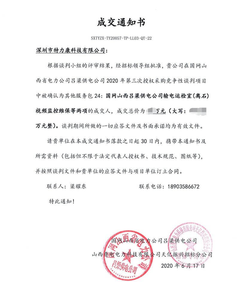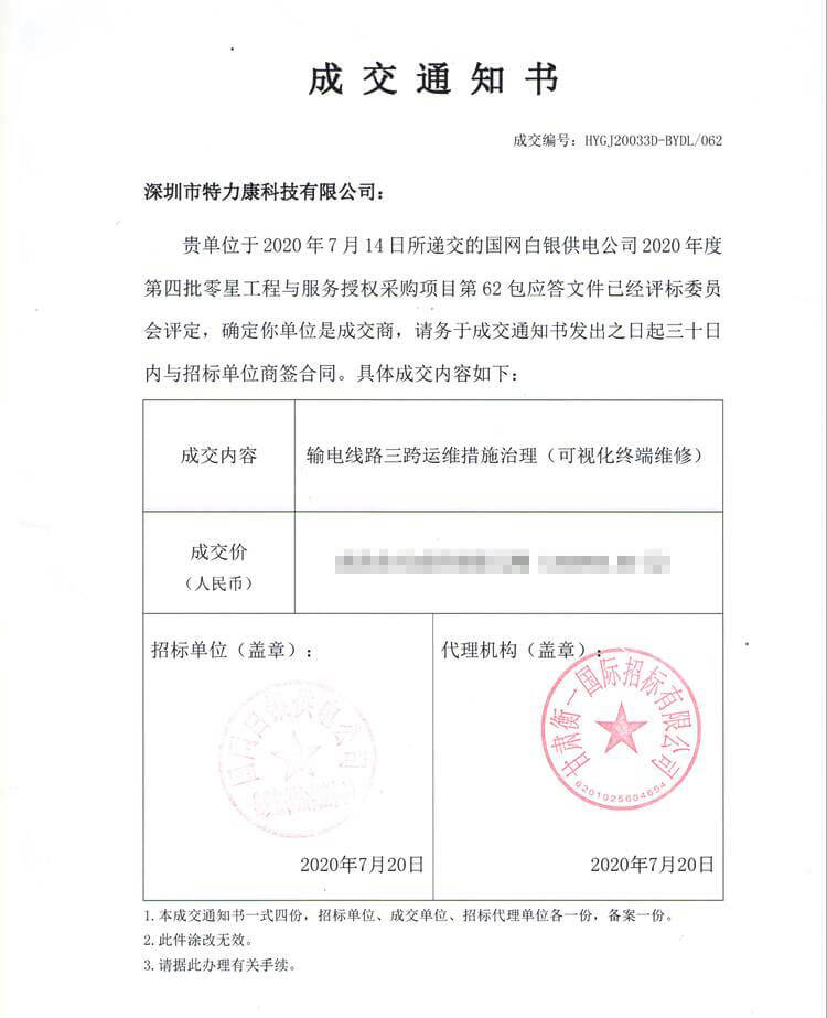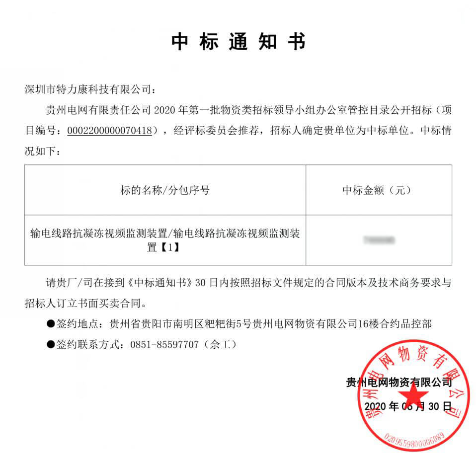特力康中標國網黑龍江送變電工程公司的2024年度第18次物資類競爭性談判采購項目——慶陽驅鳥器物資框 特力康中標國網甘肅省電力公司省管產業單位2024年第五次物資競爭性談判授權采購項目 中標喜訊:深圳市特力康科技有限公司成功入圍許繼集團綜合能源公司輸電線路視頻在線監測裝置模塊集采項目 中標喜訊:特力康成功中標國網重慶市電力公司渝中一片區項目 特力康成功中標國網天津市電力公司2024年第二次?物?資招標項目 特力康中標國網安徽省電力有限公司蕪湖供電公司2024年3月非物質采購項目 特力康輸電線路智能AI多目監控裝置+傾斜監測守護山西輸電生命線 鄂網“全景眼”:特力康一體化視頻監控系統守護輸電線路 山東電網 “穩塔哨兵”:特力康智能桿塔傾斜監測預警裝置筑牢電力桿塔安全防線 特力康科技輸電線路高清圖像監控裝置,為河南輸電通道筑牢安全屏障 黃土高原護塔穩:特力康傾斜監測裝置為山西電網筑牢根基 黔山冰防線:特力康 “數據 + 圖像” 雙監測守護貴州輸電線路 戈壁林區的 “火情哨兵”:特力康紅外熱成像裝置守護甘肅輸電線路 內蒙電網裝上 “舞動監測眼”:特力康輸電線路防舞動監測系統守護線路安全 寧夏配電線路安裝了我司防外破電子化智能警示牌